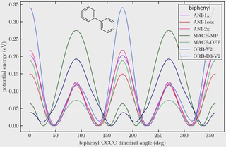 To assess the physical adequacy of the models, a series of tests have been conducted to evaluate their translational and rotational invariance, energy and linear/angular momentum conservation, as well as the description of bonds, angles and dihedrals.
